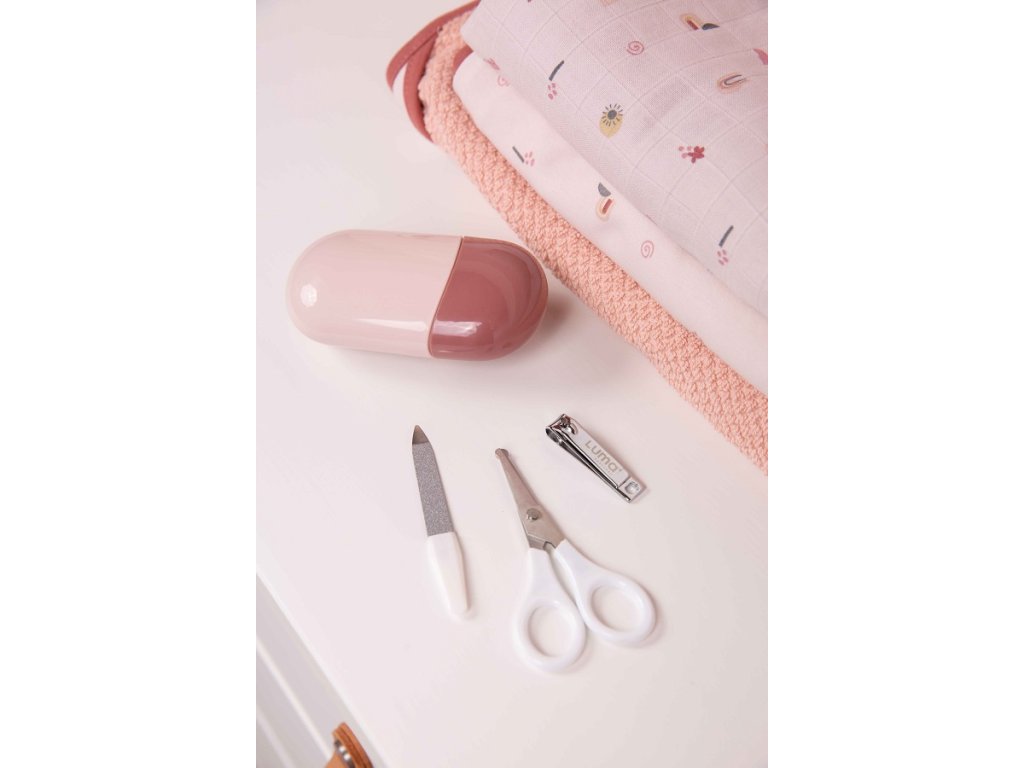 - Manikúra sa dodáva v praktickom puzdre v niekoľkých atraktívnych farbách a je súčasťou širšej série kúpeľňových produktov Luma Babycare, ktoré sú plne recyklovateľné.