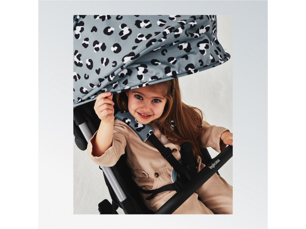 Náhradný poťah na sedadlo a striešku na športový kočík Inglesina Quid 2023 v tmavosivej farbe so zvieracím vzorom Animalier Grey.