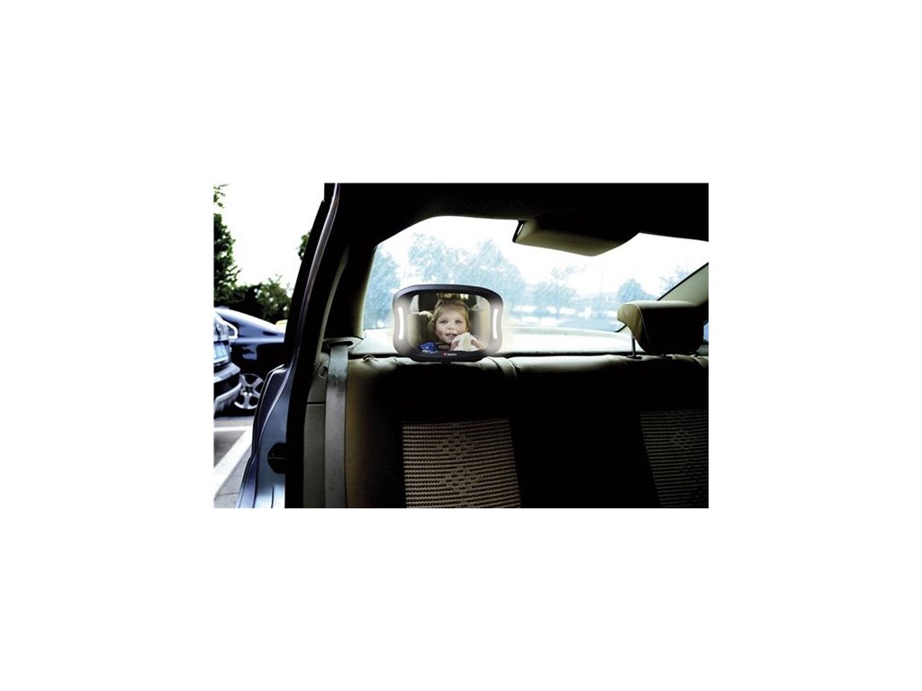 Pri jazde v temných večerných hodinách môže byť ťažké vidieť vaše dieťa na zadnom sedadle. So spätným zrkadlom s LED diódou môžete dieťa v autosedačka obrátené proti smeru jazdy jednoducho sledovať. LED svetlo vám umožňuje dieťa vidieť a zároveň poskytuje príjemné nočné svetielko. Diaľkový ovláčdač uľahčuje zapnutie a vypnutie svetla za jazdy, podľa potreby. Zrkadlo sa inštaluje a nastavuje do správneho uhlu veľmi jednoducho. Keď je dieťa väčšie a sedí v smere jazdy, zrkadielko môžete dať jednoducho dole.