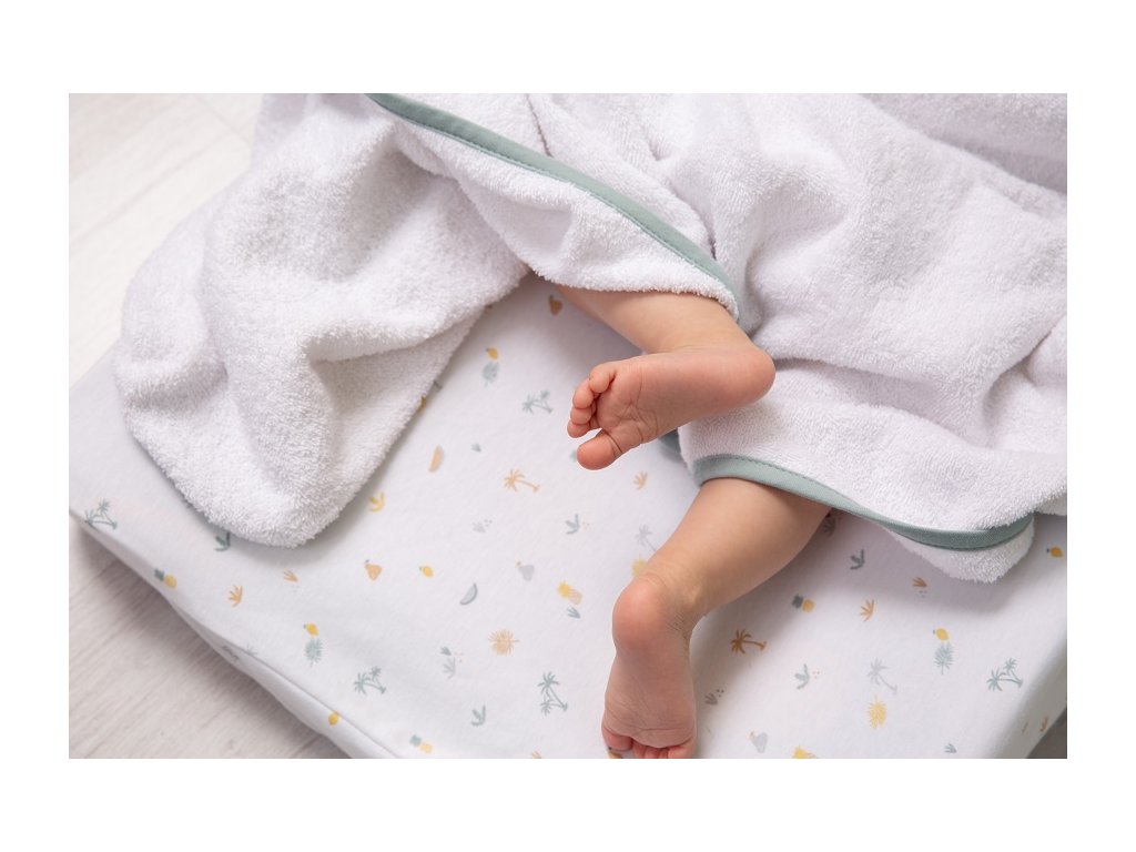 Po tom čo sa dieťa vykúpe, prichádza na rad príjemná masáž detským olejčekom na prebaľovacej podložke potiahnutej príjemným džerzejovým návlekom holandskej značky Luma babycare. Tam sa dieťa cíti v teple a ako v bavlnke. Často pri tom zaspí. Poťah sedí na väčšinu 2-stranných prebaľovacích podložiek, samozrejme najlepšie ladí s originálnou podložkou od Lumy.