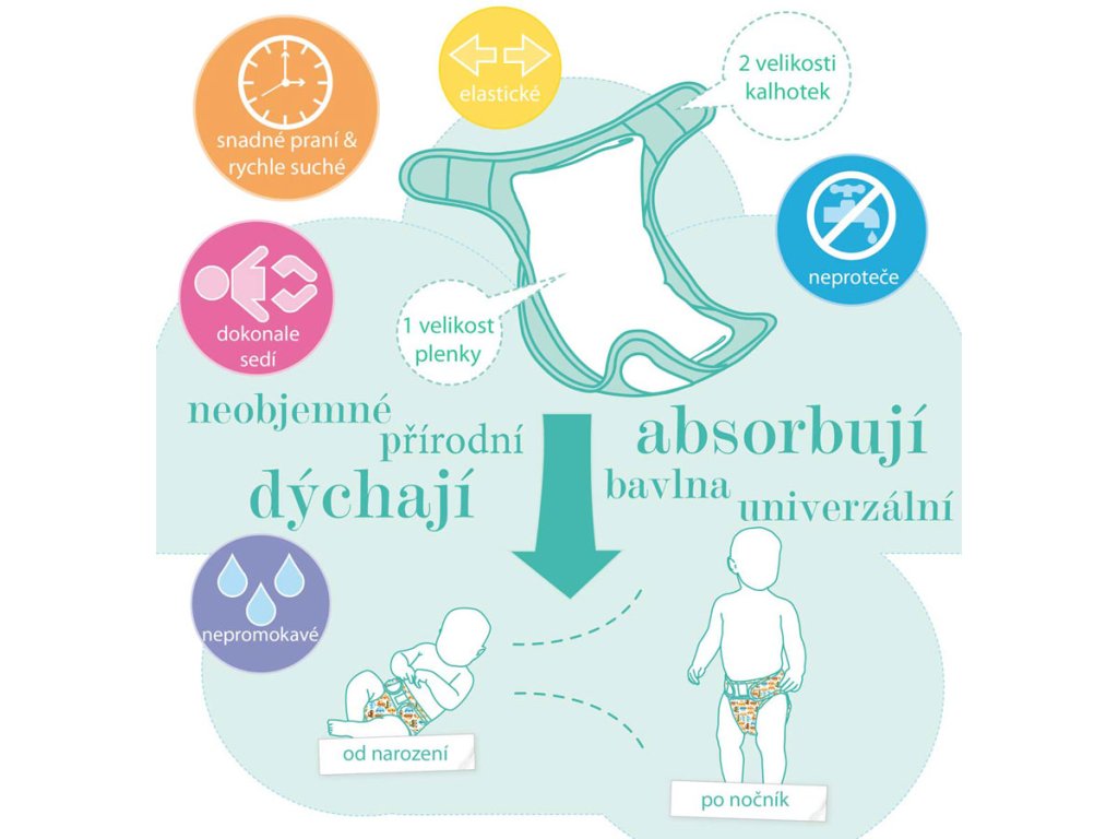 - viacnásobné vrstvy bavlny zaisťujú vysokú absorpciu a udržujú dieťatko v suchu