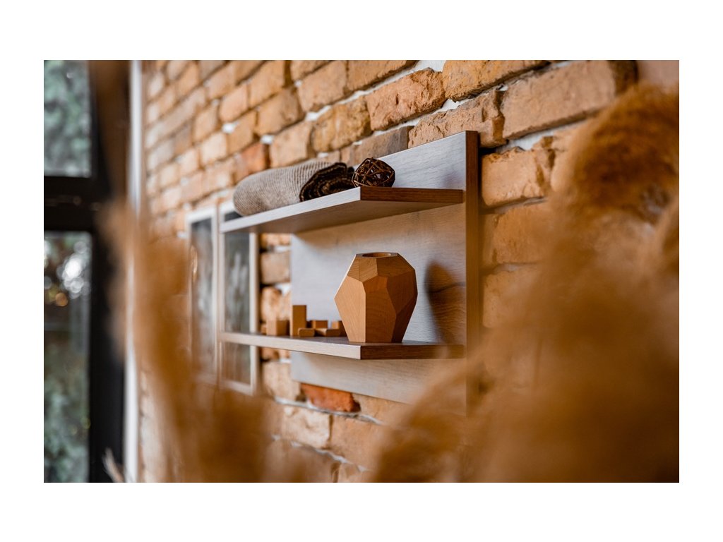 Nástenná polica má dve priestranné police, aby ste mali všetky potreby na prebaľovanie a každodennú starostlivosť o dieťa po ruke. Navyše šetrí miesto a je praktickým doplnkom, ktorý dotvára celkový dizajn detskej izby.