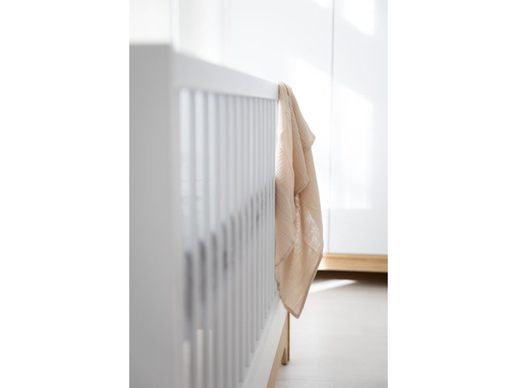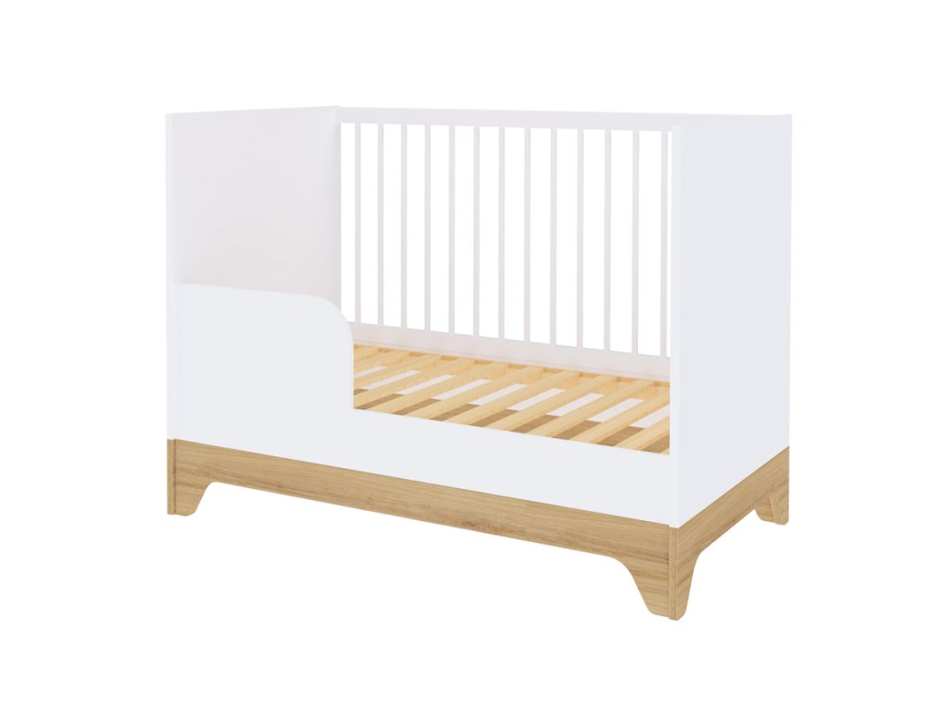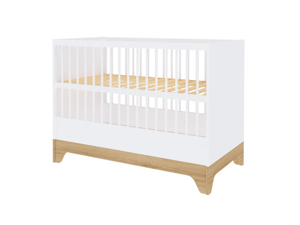 Detská postieľka Lumina White 60x120 je nevyhnutným prvkom modernej detskej izby. Jej čistý dizajn, prírodný vzor dreva a kombinácia bielej farby vyžarujú teplo a kľud a dokonale zapadnú do každého interiéru.