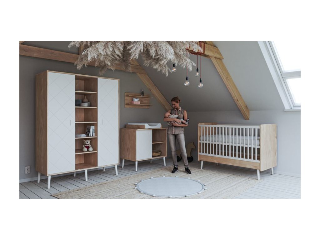 Jedným z nevyhnutných prvkov detskej izby je postieľka. Postieľka 120 x 60 cm je priestorovo nenáročná, ale vďaka svojim veľkorysým vnútorným rozmerom je použiteľná po dlhú dobu. Výškové nastavenie roštu postieľky (tri polohy) ju prispôsobia aktuálnej potrebe dieťaťa i rodičov. Ako sa dieťa vyvíja, je možné rošt postele umiestňovať stále nižšie, a tým zaistiť, aby bol spánok dieťaťa vždy maximálne pohodlný a bezpečný. Z jednej bočnice je možné vybrať 3 lamely, takže keď je dieťa staršie, môže samostatne vstupovať a vystupovať z postieľky. Rošt je súčasťou postieľky.