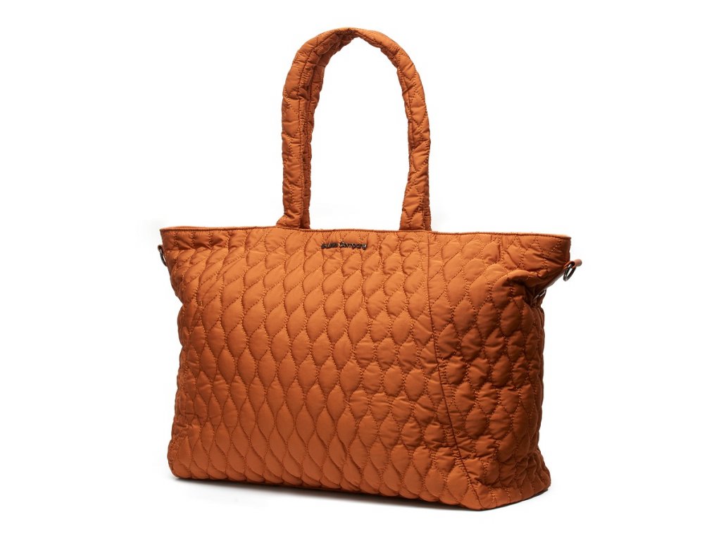 Krásna veľká prebaľovacia taška z prešívanej látky v aktuálnej medenej farbe pre módnu mamičku, mnoho priehradiek a vrátane prebaľovacej podložky. Svetlá podšívka.