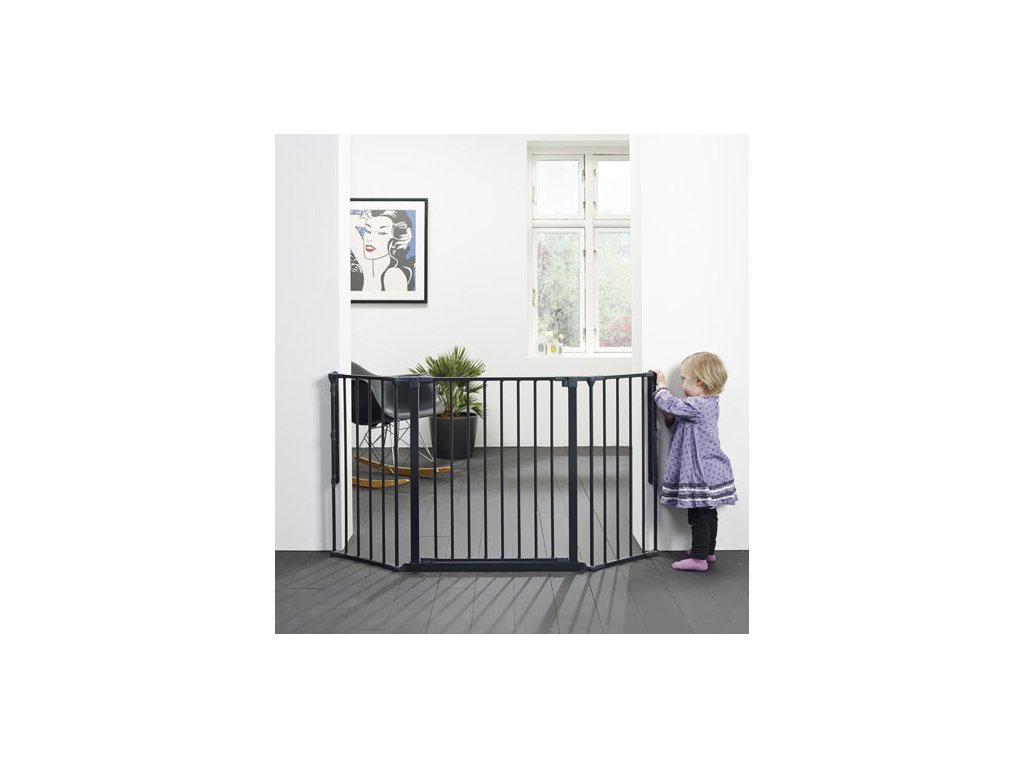 BabyDan priestorová zábrana Flex M je veľmi flexibilná svojou dĺžkou a spôsobom upevnenia tam, kde bežná otvorová zábrana už nestačí.