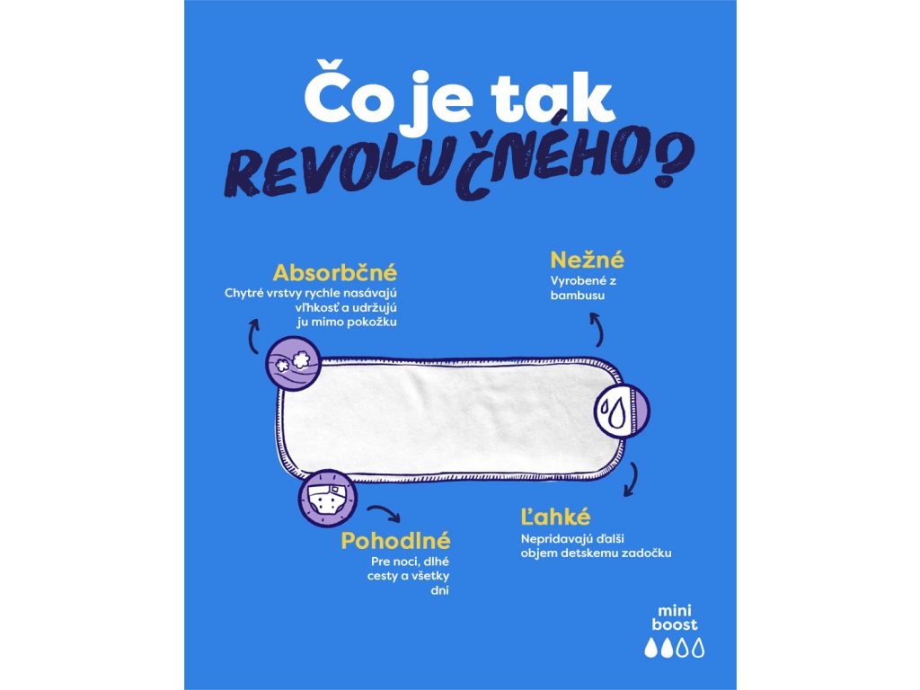 U novorodencov je objem žalúdka veľmi malý cca 6 ml. Ako dieťa rastie, zväčšuje sa aj objem jeho žalúdka, v 1 mesiaci 80-150ml. Spolu s rastúcim žalúdkom, rastie aj množstvo, ktoré dieťa skonzumuje a predlžuje sa doba medzi dojčením. Preto spočiatku stačí kapacita samotnej plienky, neskôr pridáme absorpčnú vkladaciu vložku mini boost, ktorá takmer nezväčší jej objem, ale zdvojnásobí jej kapacitu.