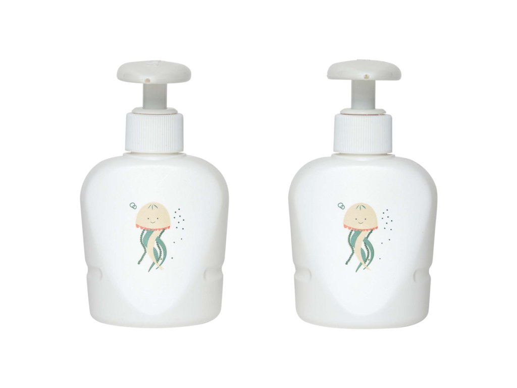 Set dávkovača mydla a šampónu. Tieto dávkovače sú pre deti vďaka milým postavičkám veľmi atraktívne a je možné ich používať okrem termovaničky aj inde podľa vašej fantázie.