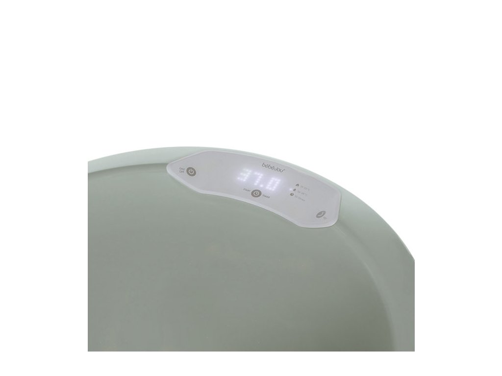 Sada komfortnej digitálne detskej vaničky a Bébé-jou Sense Edition v zelenej farbe a luxusného bieleho stojanu na vaničku Sense .