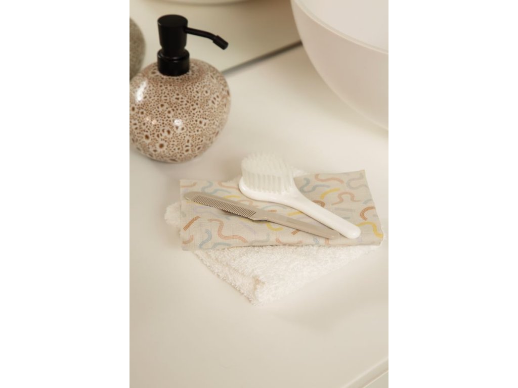 Táto darčeková sada poteší novopečených rodičov hneď niekoľkokrát. Prvýkrát, keď ju dostane a potom zakaždým, keď ju budú používať. Nie je to len krásny darček, ale aj veľmi praktická, krásne zabalená sada. Obsahuje kúpací teplomer, manikúru, hrebeň a kefu.