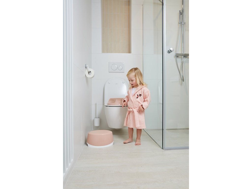WC sedátko spolu so stúpadlom približuje vášmu dieťaťu možnosť začať používať toaletu. Je určené pre deti od 18 mesiacov do 5 rokov. Maximálne zaťaženie je 30 kg. Je vybavené nastavovacím kolíkom, pomocou ktorého sedátko prispôsobíte takmer každej toalete. Ochrana proti striekajúcej vode zabraňuje postriekaniu toalety.