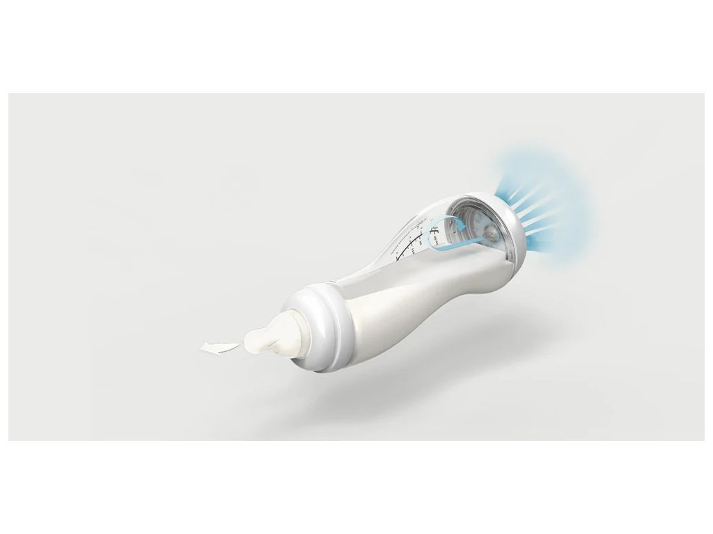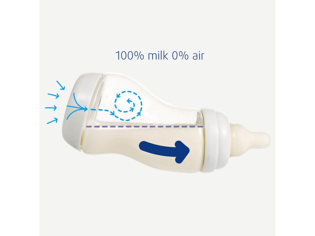 - Ergonomický tvar stimuluje pri kŕmení prirodzené držanie tela, v podobnej polohe ako pri dojčení