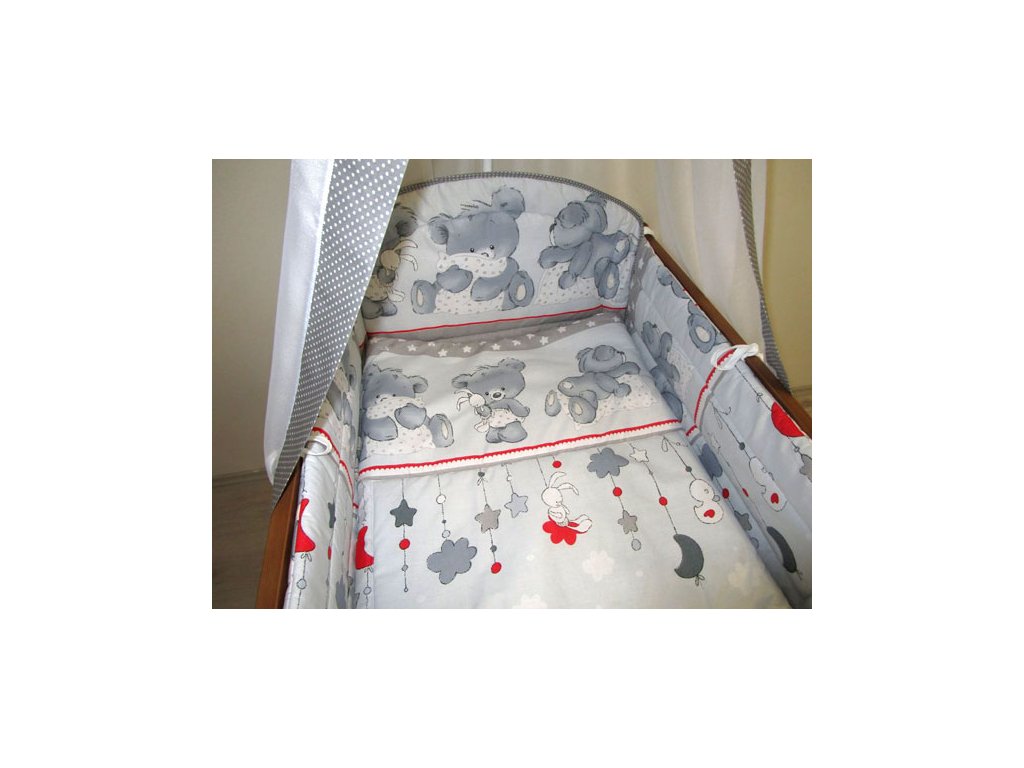 Sada obsahuje: vankúšik (40 x 60 cm), perinku (100 x 135 cm) a mantinel (cca 200 x 25 cm).