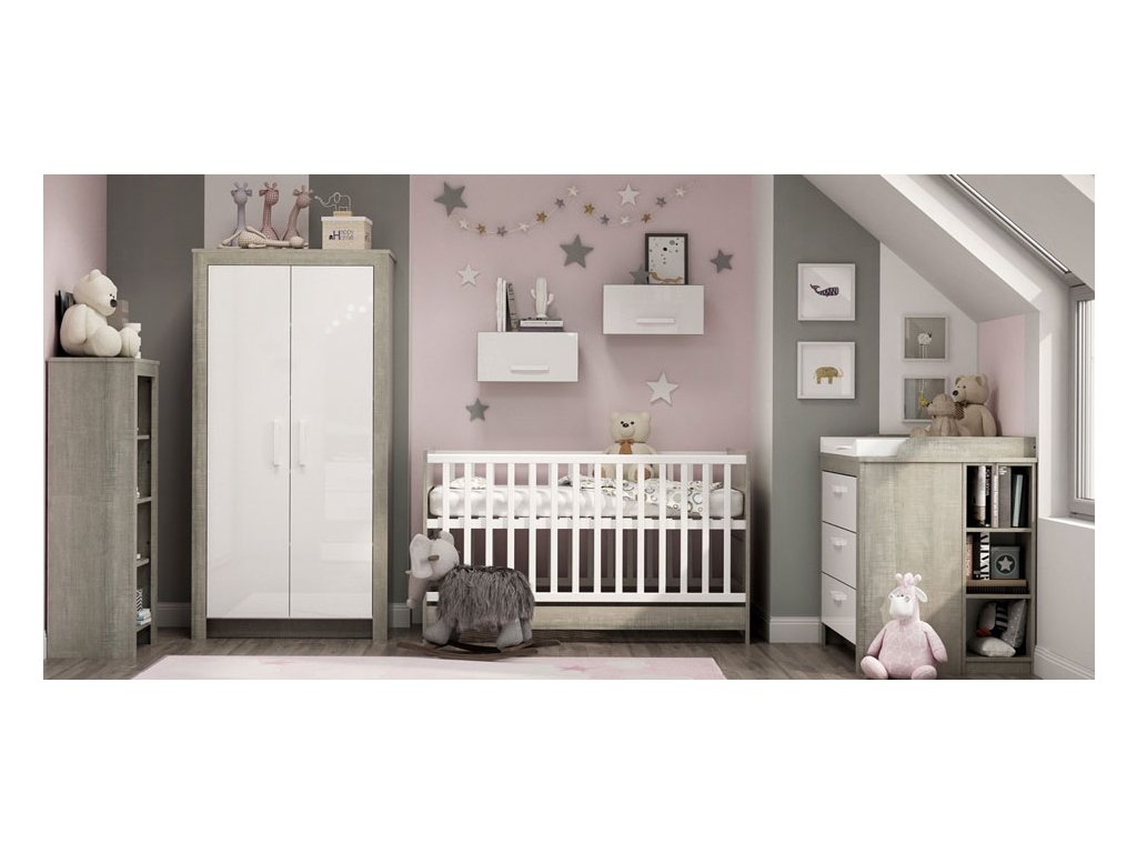 Priestranná skriňa CUBE do detskej izby sa vyznačuje čistou formou a elegantnou kombináciou sivého duba v kombinácii s plochami bielej farby s vysokým leskom.