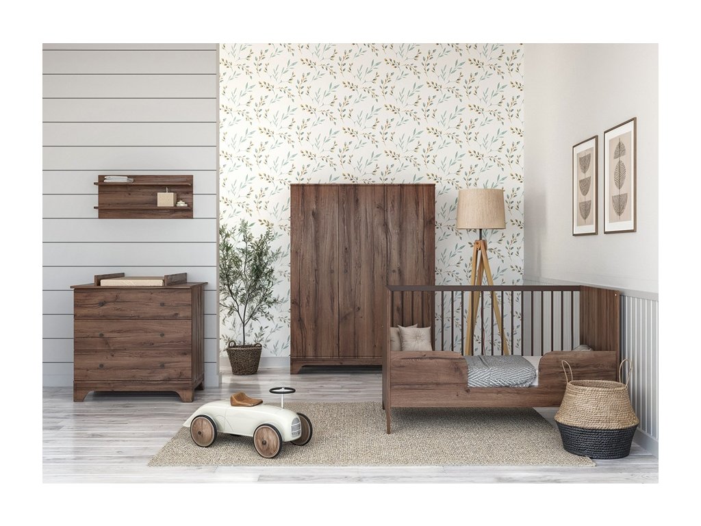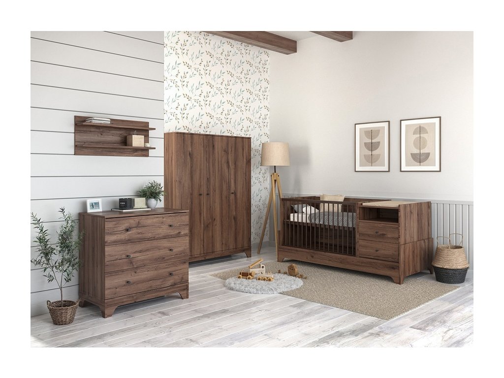 Priestranná 3 dielna šatníková skriňa do detskej izby Nest Walnut pojme všetko oblečenie aj iné drobné potreby pre dieťa po dlhú dobu.