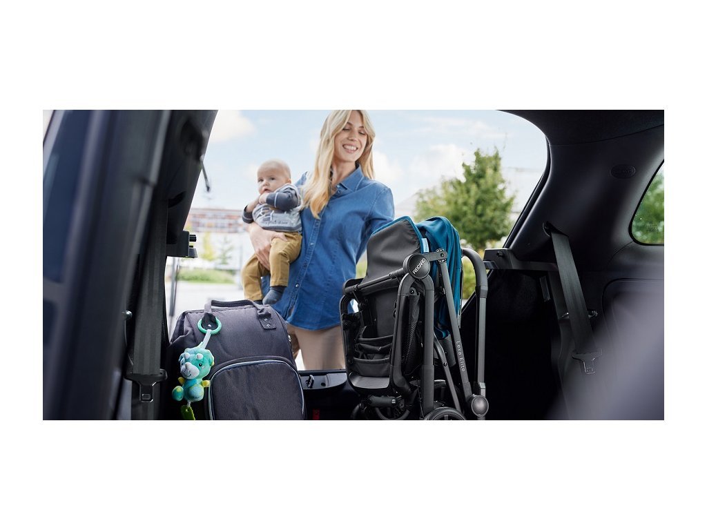 - Aj v polohe na ležanie strieška UPF50, vybavená okienkom, kryje väčšinu sedadla