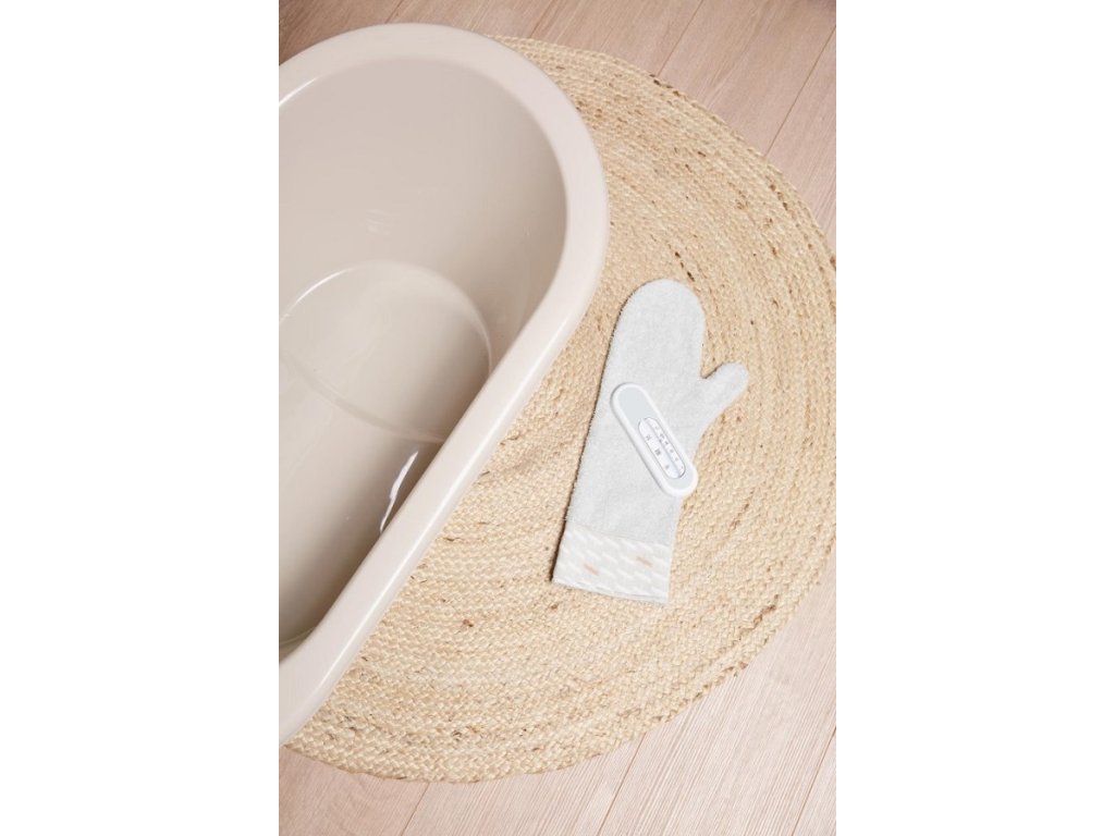 Chcete si užiť pri kúpaní so svojím dieťaťom ešte viac zábavy? Vyskúšajte béžovú froté žinku v tvare veľkej rukavice. Vyrobené z luxusného žakárového froté.