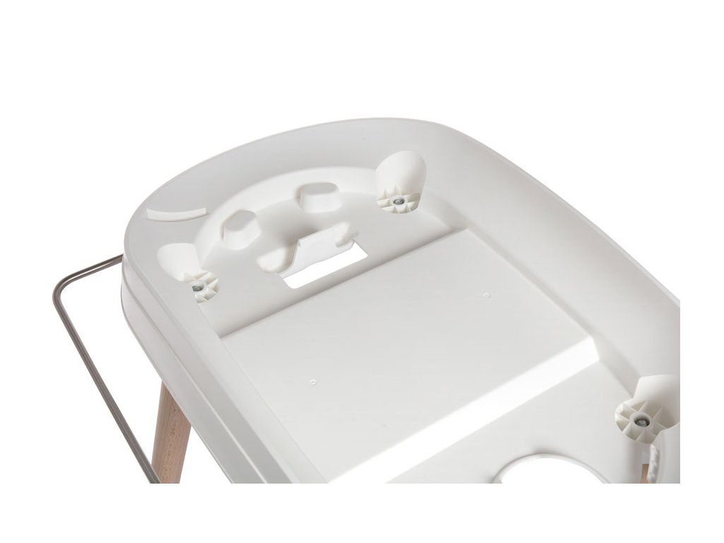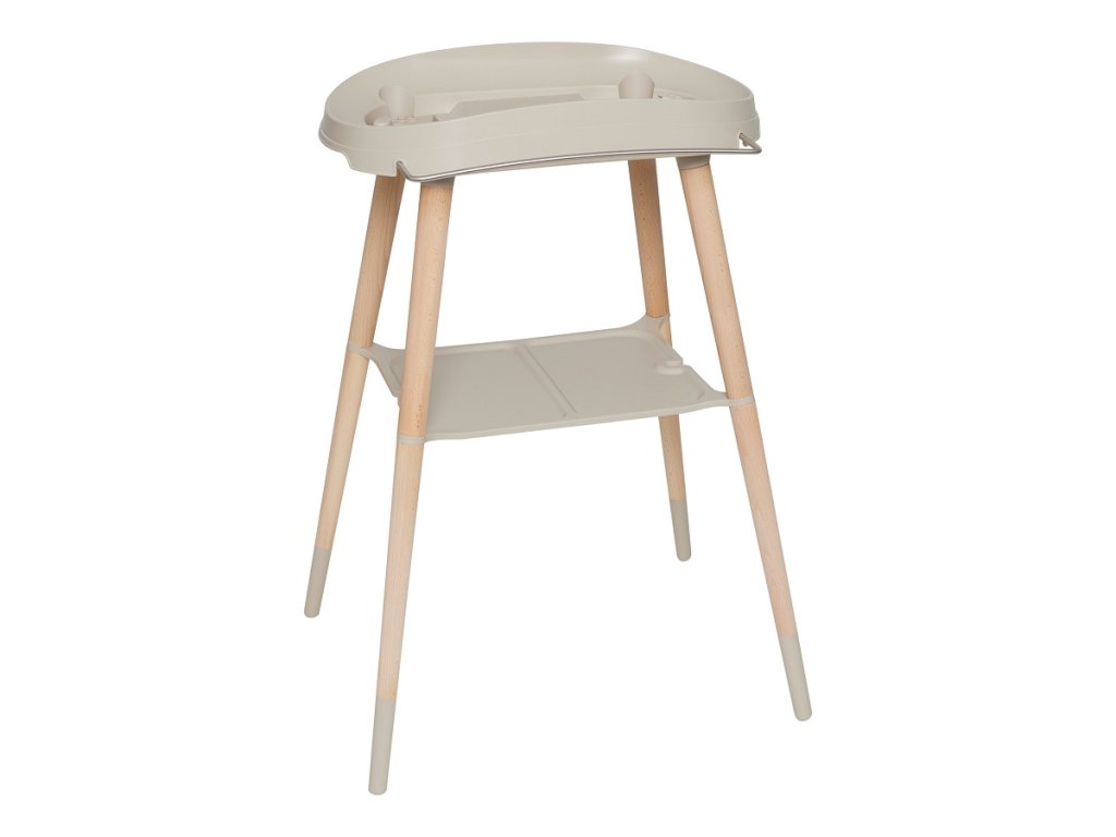 Veľmi stabilný stojan Sense má nohy vyrobené z bukového dreva s certifikáciou FSC. To dodáva stojanu teplý, moderný vzhľad. Je vybavený praktickými pomôckami: vpredu je pripevnený držiak na uteráky. Priestorná plastová polička poskytuje dostatok miesta napríklad pre šampón, žinku, vodné hračky či kúpací gél. To znamená, že máte po ruke všetky potrebné veci, aby ste si s dieťatkom mohli pokojne užiť kúpanie. Inovatívny systém upevnenia zaisťuje, že vaňa sa dá jednoducho pripevniť k stojanu a rovnako jednoducho dať dole. Po kliknutí môžete svoje dieťatko nerušene a bezpečne kúpať.