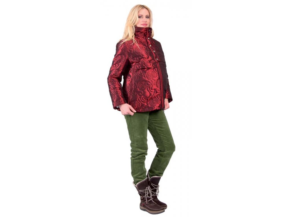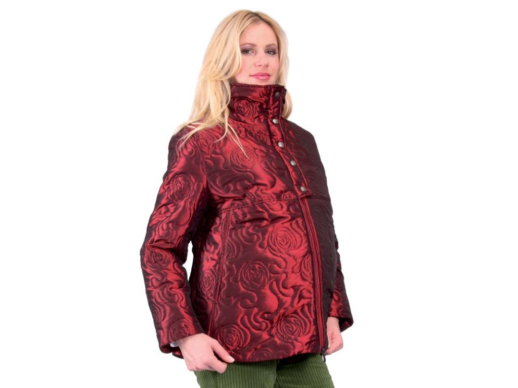 Veľmi pekná, efektná tehotenská bunda z ľahko lesklého prešívaného materiálu. Je so stojačikom, zapínanie na zips, ale v hornej časti predného dielu je doplnená o ozdobnú légu na cvočky. Na predných dieloch sú do švov včlenené vrecká. Bunda strihu A so zapínaním na zips, so stojačikom. Predný diel je zatiahnutý pod prsiami, na jeho vŕšku je nechaná léga, dolná časť je členená zvislými švami, do ktorých sú včlenené vrecká. Členenie zadných dielov nadväzuje na členenie predných dielov, ďalej je členená spodná čast dvomi zvislými švami. Rukávy dlhé, dvojšvové.