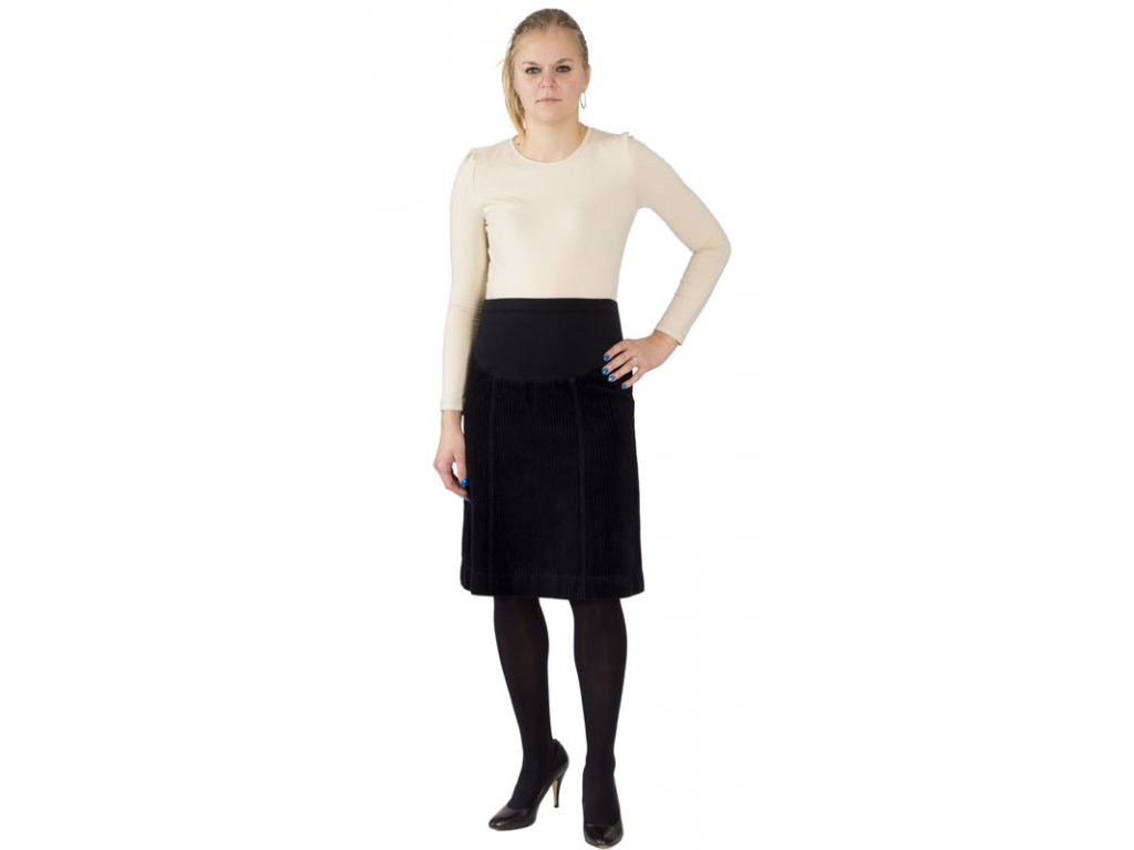 Slušivá tehotenská sukňa áčkového strihu z menčestru s užším rebrovaním.