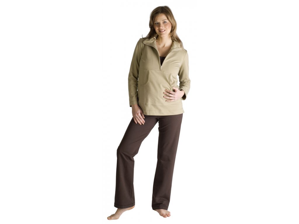 Pohodlná bavlnená mikina s miernymi rozparkami, vreckami na bruchu a zipsom. Možno nosiť aj mimo tehotenstvo...