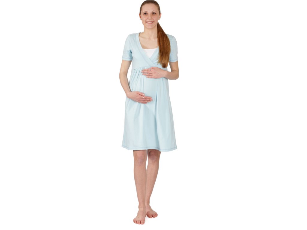 Je vyrobená z veľmi príjemnej pevnejšej bavlny s lycrou. Bavlnený materiál je mäkký na dotyk a veľmi príjemný na nosenie. Výstrih je tvorený prekrížením do V a je podložený bielou vsadkou s prestrihmi pre pohodlné kojenie. Má krátky rukáv, dĺžka približne ku kolenám.