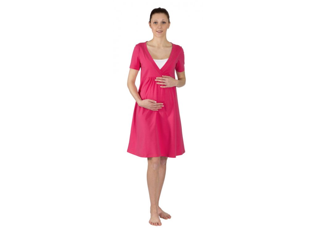 Tehotenská a dojčiaca bavlnená nočná košeľa vo sviežej ružovej farbe.