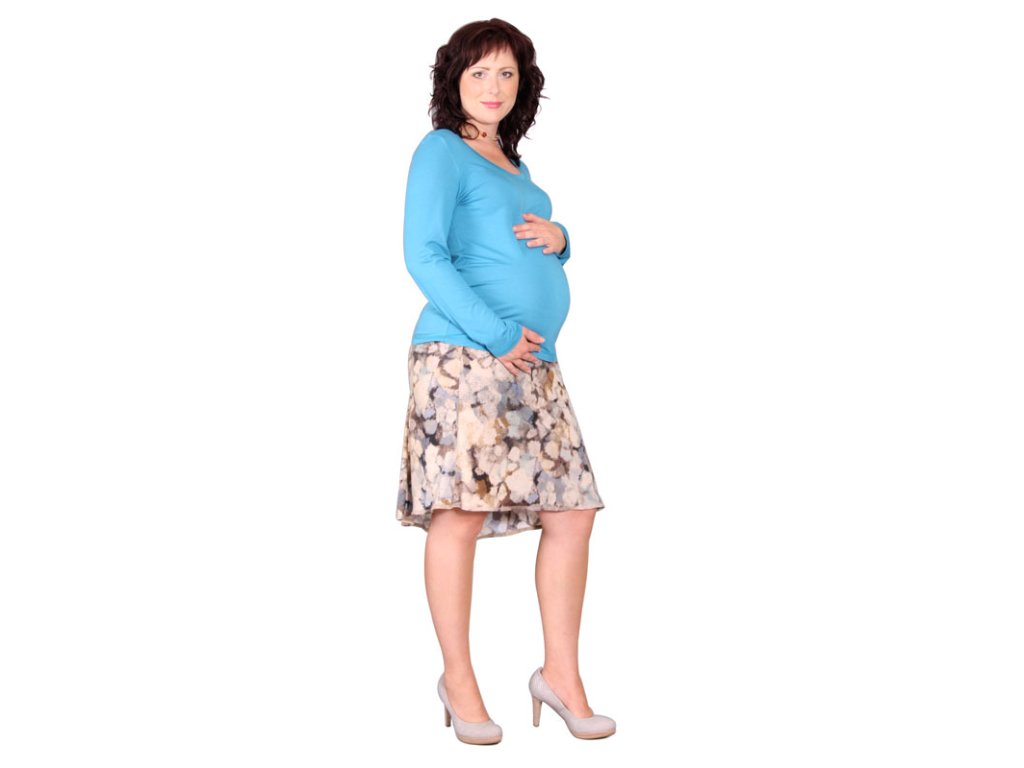 Veľmi pohodlná sukňa z piatich dielov, z jemného pleteného, teplejšieho a splývavého zmesového materiálu s abstraktným pastelovým vzorom. Dĺžka je na prednom diele nad kolená a smerom k stredu zadného dielu sa postupne predlžuje a ľahko rozširuje. Môže byť s nízkym alebo vysokým pásom.