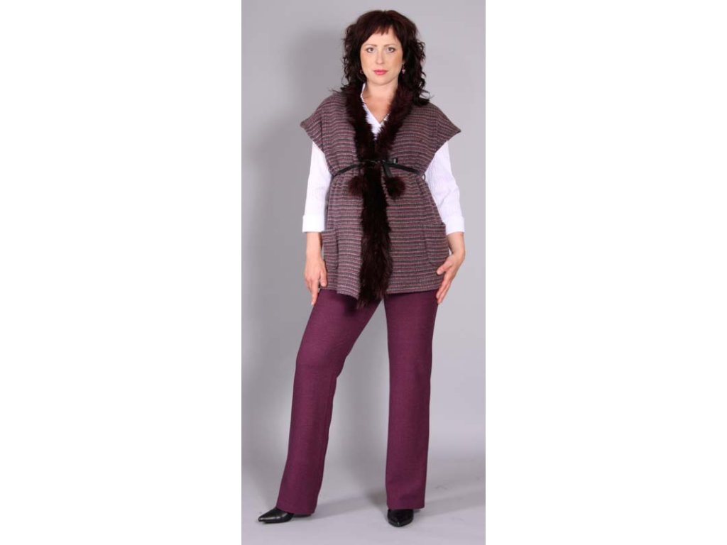 Teplejšie vesta z mäkkého hrejivého materiálu s prímesou vlny. Má predĺžené ramená, predné diely sú širšie, takže schovajú i väčšie bruško a sú doplnené nakladanými vreckami. Predné okraje a priekrčník sú olemované umelou kožušinou. Zaväzovanie je riešené koženým opaskom zaväzujúcim sa nad bruškom.
