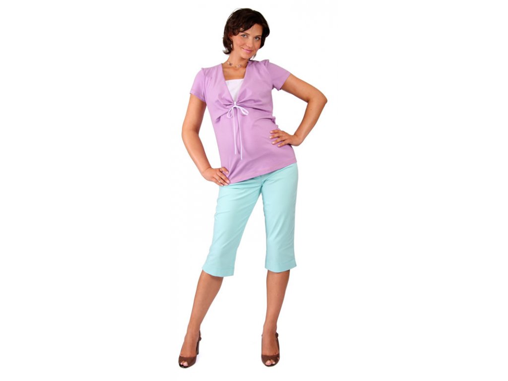 Klasické úzke tehotenské 3/4 nohavice s krátkymi rozparkami v bočných švoch. V páse sú len s nízkym pásom.