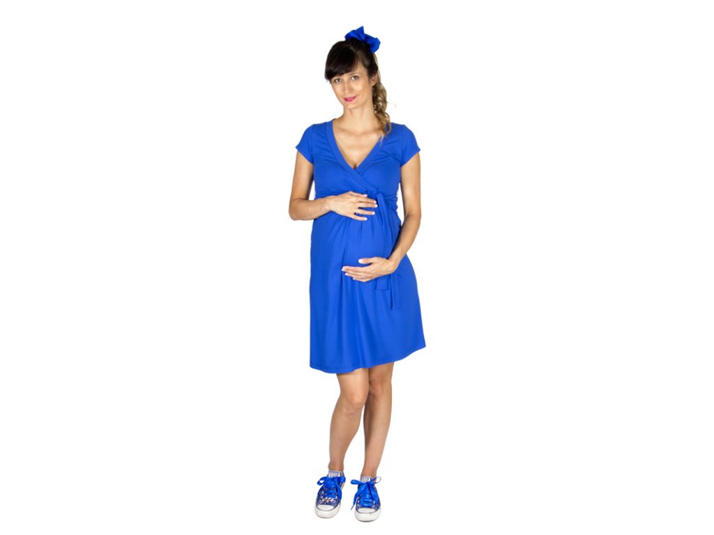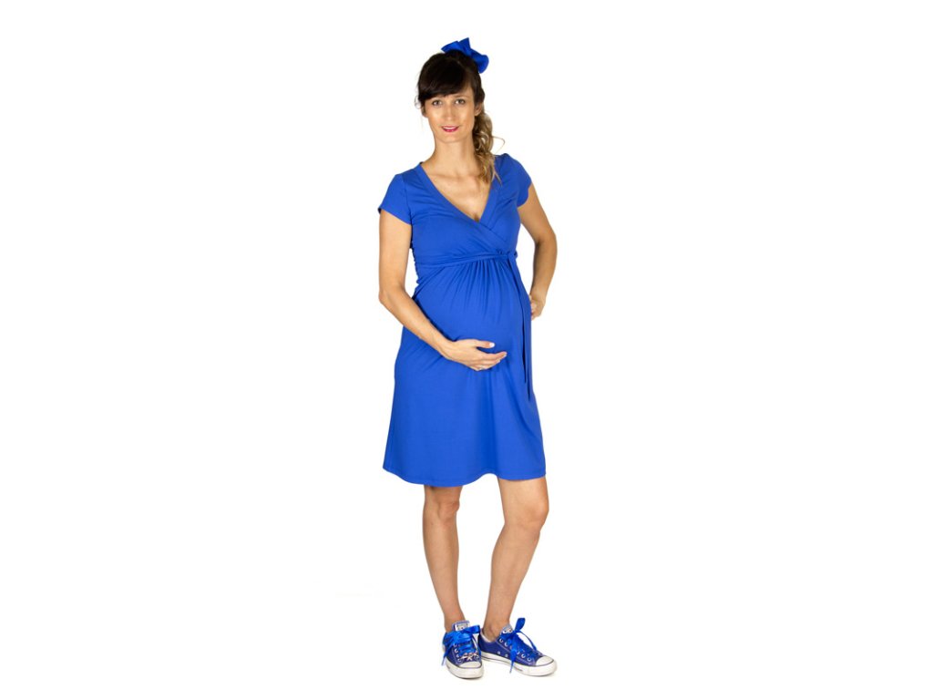 Elegantné letné tehotenské šaty z veľmi príjemného elastického materiálu a výstrihom do V. Pohodlné dojčenie je zaručené vďaka preloženým vrchným dielom. Majú krátky rukáv, predný diel je podstrihnutý pod prsiami a sukňová časť je nariasená, čím vznikne voľnosť pre rastúce bruško. Šaty sú vhodné pre slávnostnejšie príležitosť, ale využijete ich aj do práce a voľný čas. Dajú sa nosiť nielen v období tehotenstva, ale aj po pôrode, keď sa vám bude postava postupne vracať do pôvodných proporcií.
