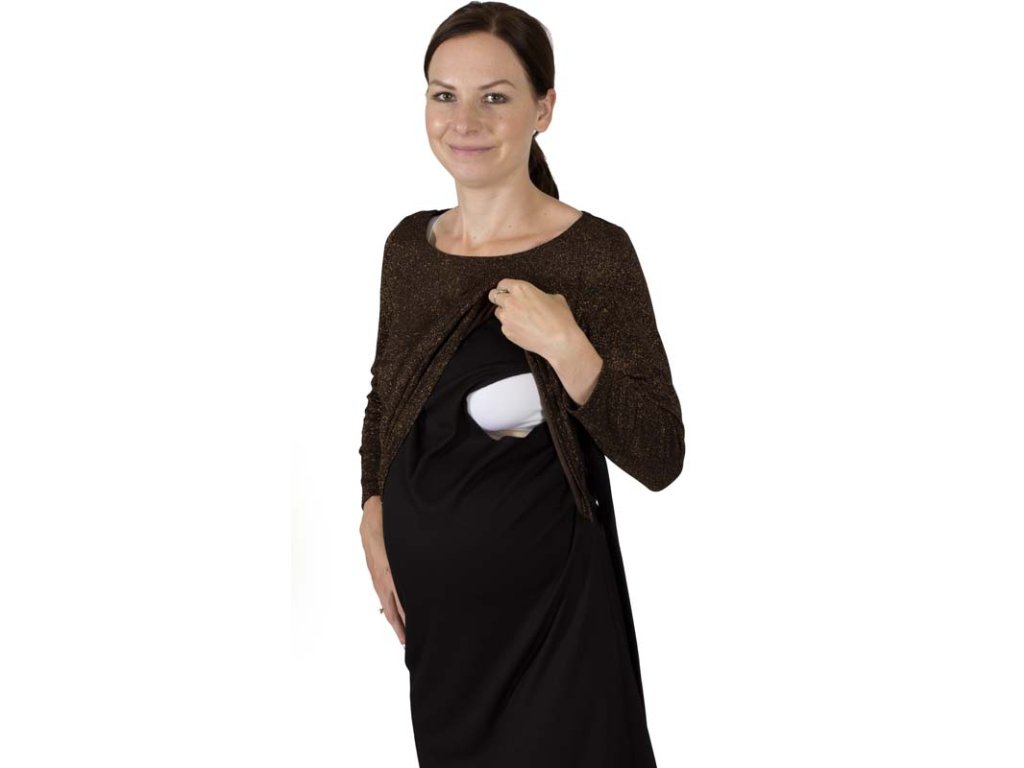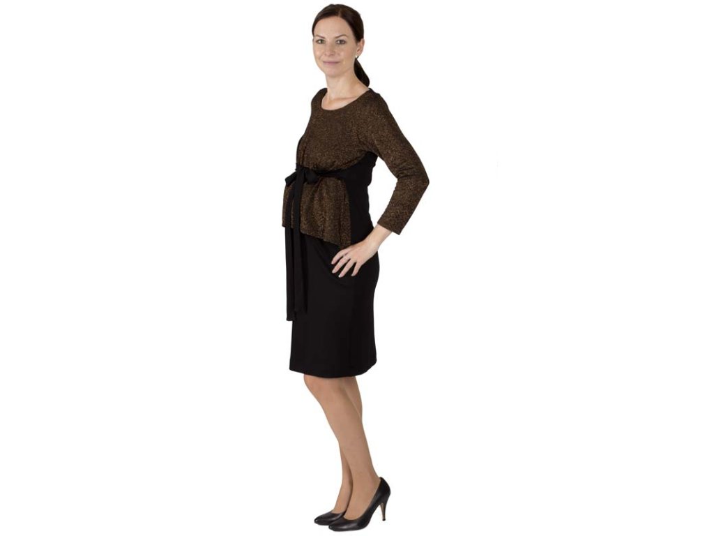 Šaty sú úzkej siluety, obzvláštnené voľným vrchným dielom, ktorý po zaviazaní mašle tvorí efektný volán. Dojčenie je možné po rozviazaní mašle a nadvihnutiu voľného vrchného dielu vďaka otvorom v spodnej časti. Šaty bez problémov využijete aj po období tehotenstva a dojčenia.