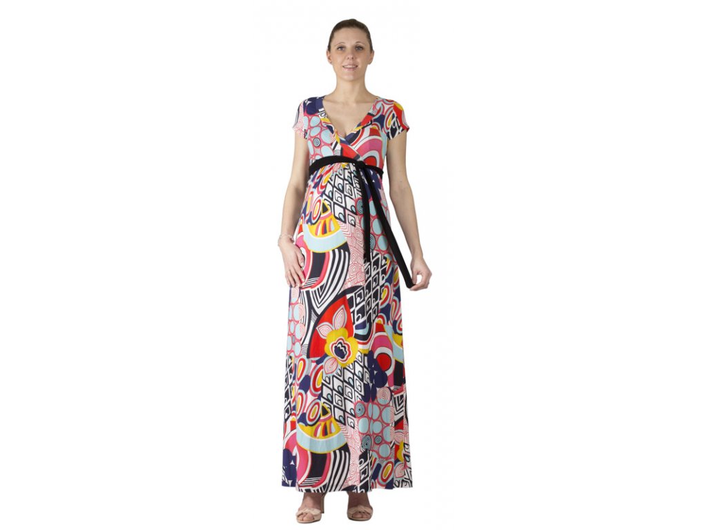 Elegantné letné tehotenské šaty z veľmi príjemného elastického materiálu a výstrihom do V. Pohodlné dojčenie je zabezpečené vďaka preloženým vrchným dielom. Majú krátky rukáv, predný diel je podstrihnutý pod prsiami a sukňová časť je nariasená, čím vznikne voľnosť pre rastúce bruško. Šaty sú vhodné pre slávnostnejšie príležitosti, ale využijete ich aj do práce a voľný čas. Dajú sa nosiť nielen v období tehotenstva, ale aj po pôrode, keď sa vám bude postava postupne vracať do pôvodných proporcií.