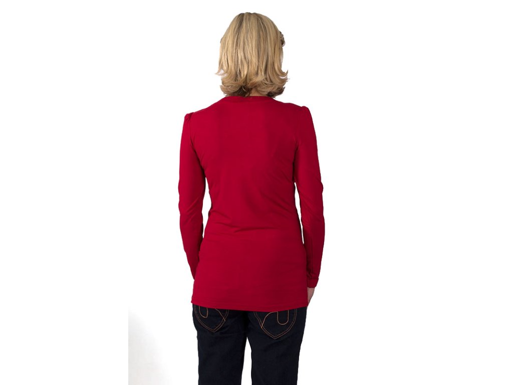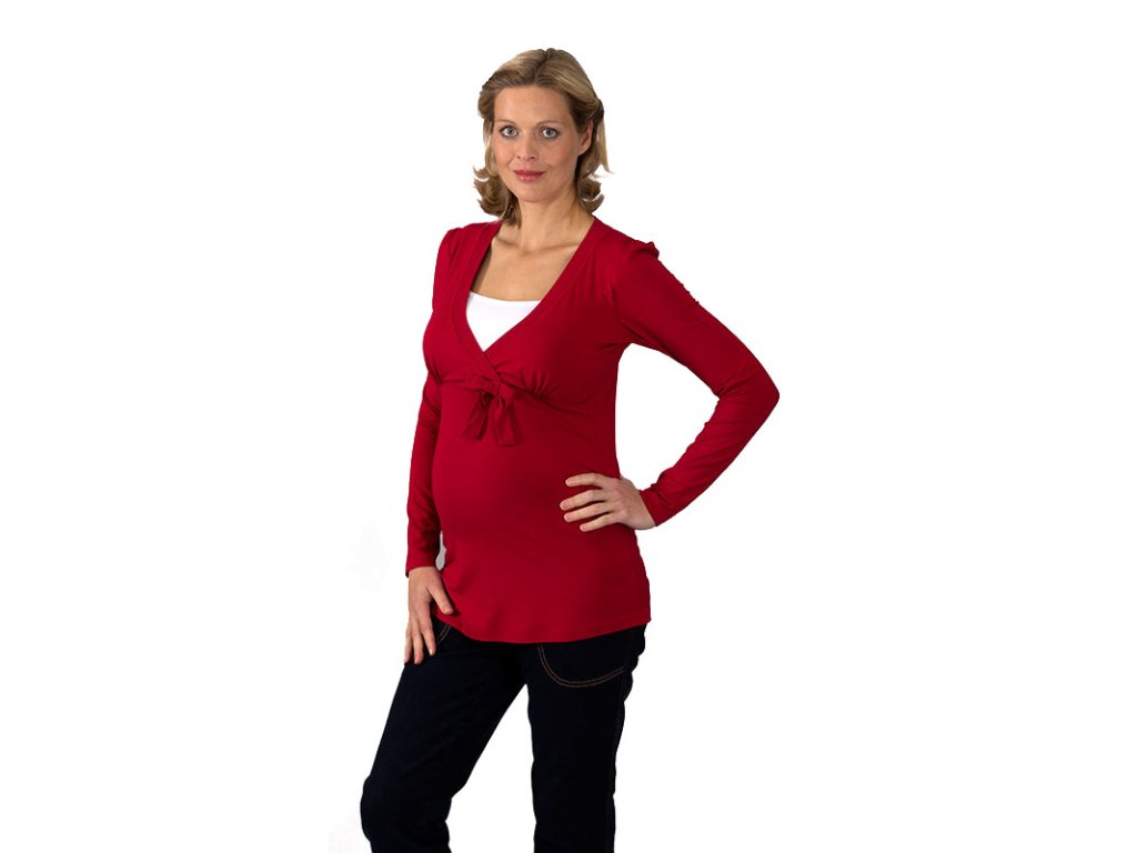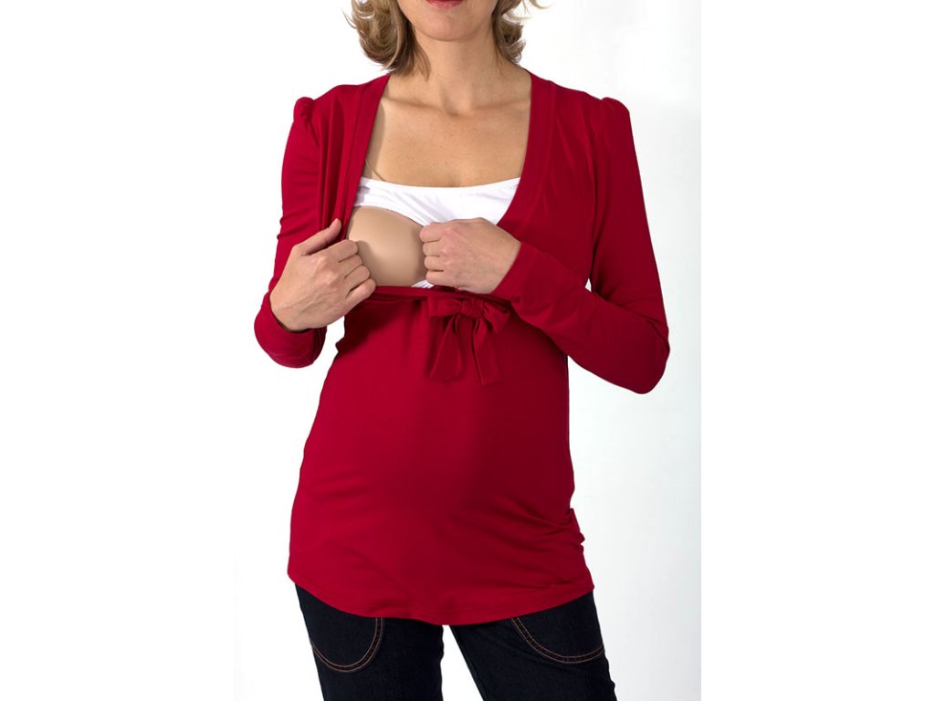 Dojčiace a tehotenské tričko z veľmi príjemného materiálu. Predný diel je pod prsiami nariasený a zdobí ho mašľa. Je v ňom vložená vsadka, ktorá uľahčuje dojčenie. Rukávy sú v ramenách nariasené.