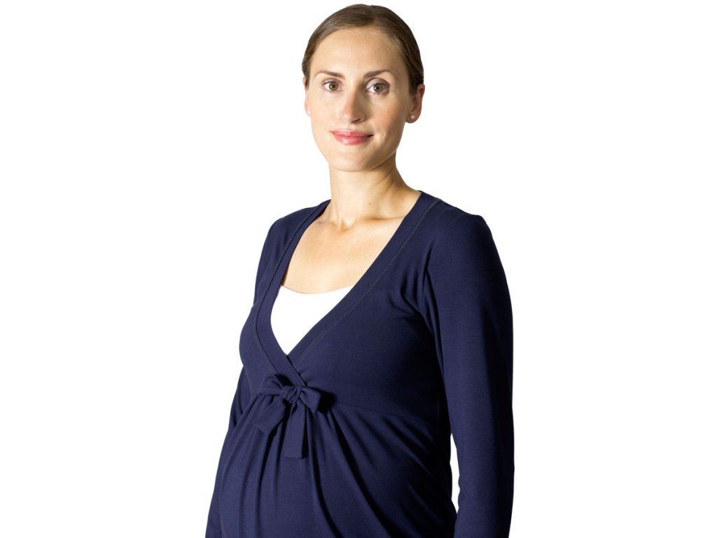 Veľmi príjemné a pohodlné dojčiace a tehotenské tričko s širším lemom výstrihu ukončeným viazačkami. Je áčkového strihu s mierne predĺženým predným dielom a dlhými rukávmi. Spodná časť predného dielu je pod prsiami nariasená na bruško. Je vyrobené z veľmi príjemnej a chladivej viskózy. Ide o prírodný materiál, ktorý sa získava z dreva.