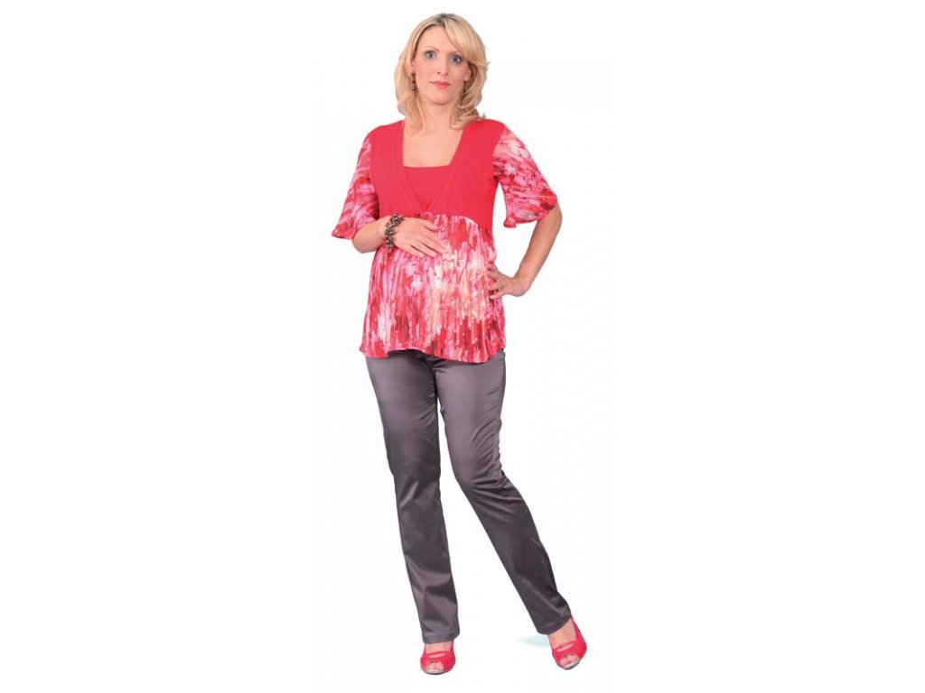 Dojčiace a tehotenské tričko z veľmi obľúbeného viskózového materiálu doplneného o šifón, ktorý tričku prepožičiava ľahkosť. Hodí sa pre voľný čas aj do spoločnosti. Skvele ho využijete aj po tehotenstve. Vhodné ku kombinácii s bolerkom Kastel.