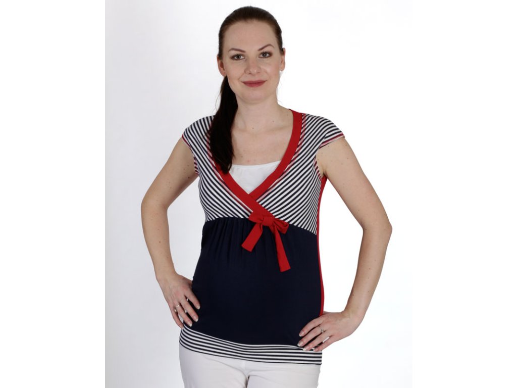 Veľmi príjemné a pohodlné kojacie tričko so širším kontrastným lemom výstrihu ukončený viazačkami. Tričko je áčkovej siluety s mírne predĺženým predným dielom, rukáv je riešený predĺžením ramenného švu. Horná predná časť je podložená vsadkou pre pohodlné dojčenie, spodná časť nariasená pod prsiami pre volnosť rastúceho bruška, dole so širším lemom. Je vyrobené z veľmi príjemnej a chladivej viskózy. Ide o prírodný materiál, ktorý sa získava z dreva.