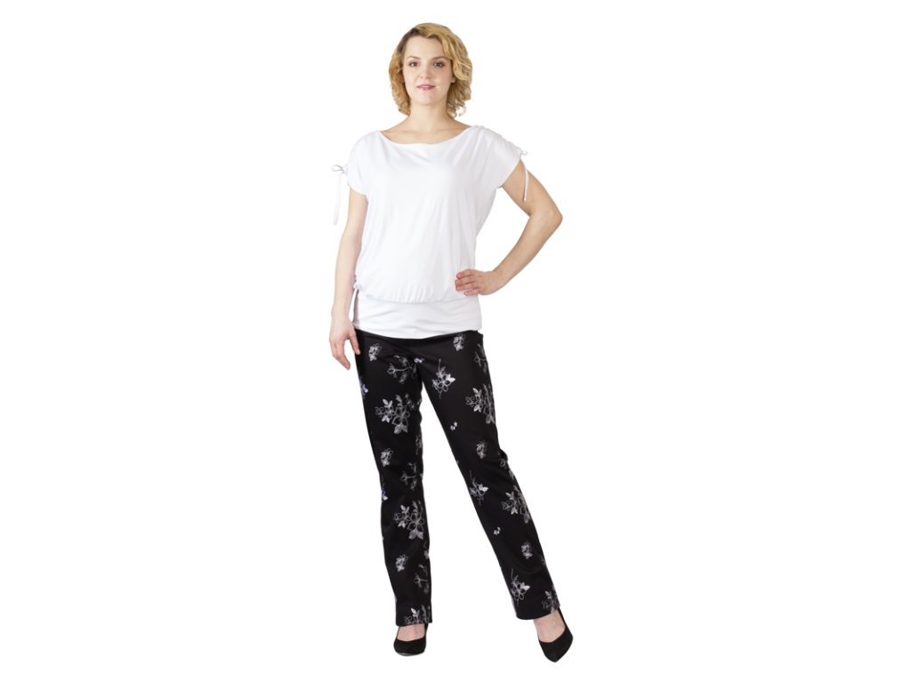 Tehotenské tričko s rukávom. Dolný kraj trička je všitý do patentu. Na nárameniciach je všitá šnúrka, ktorou je možné náramenice nariasiť.
