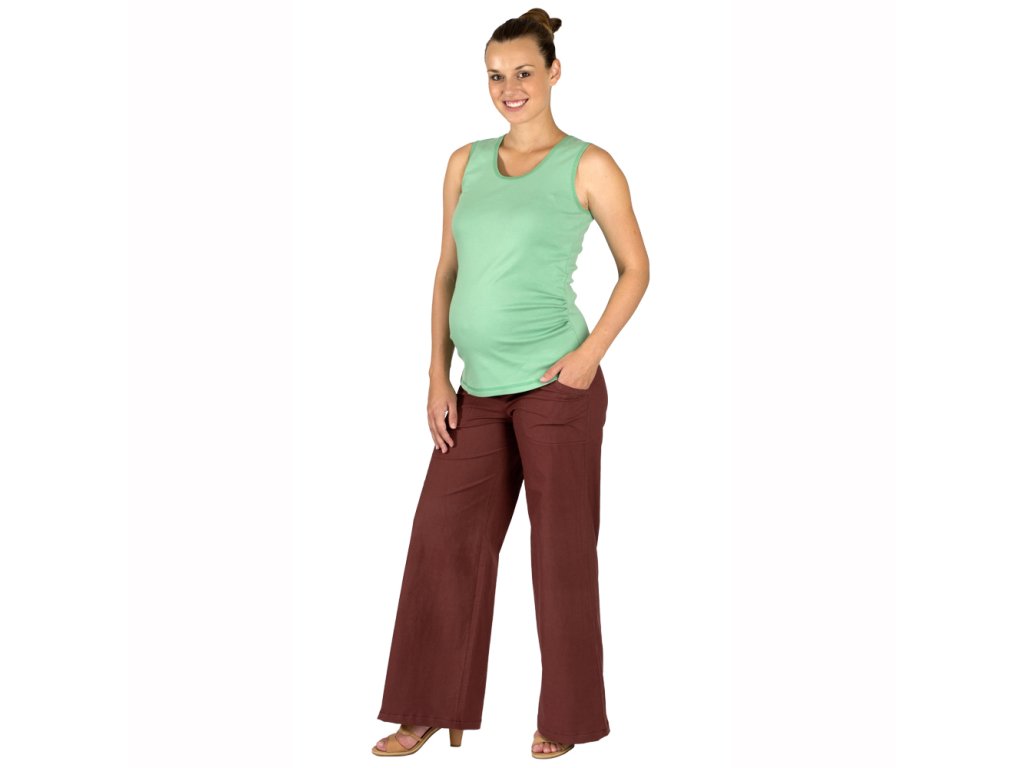 Obľúbené dlhé tehotenské nohavice z príjemnej bavlny so širokými nohavicami a klinovými vreckami na predných dieloch.
