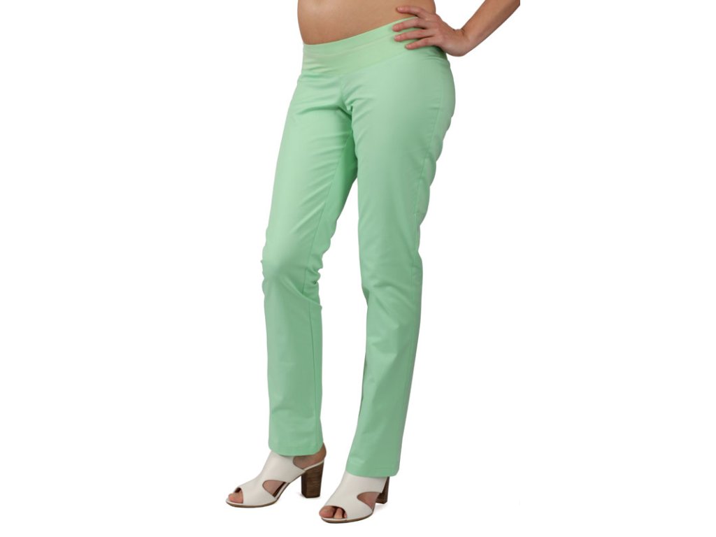 Klasické tehotenské nohavice majú úzke rovné nohavice - dolný obvod 46 cm, predný diel hladký, na zadnom diele je sedlo, ktoré je ozdobne prešité.