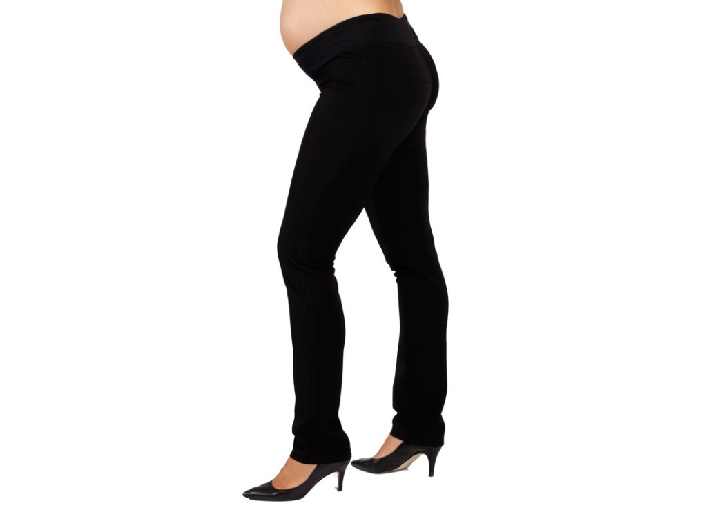 Veľmi obľúbené tehotenské spoločenské nohavice s užšími nohavicami. Sú vyrobené z veľmi príjemného elastického zmesového materiálu nenáročného na údržbu. Na prednom diele je falošný rozparok na zips, zadné diely sú bez členenia. Môžu byť s nízkym alebo vysokým pásom.