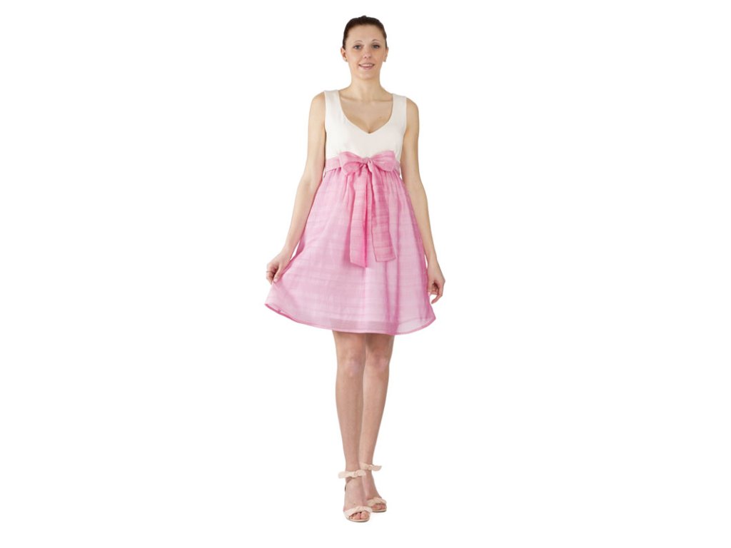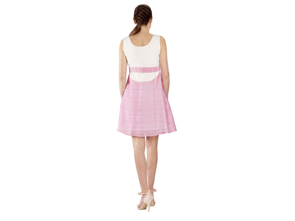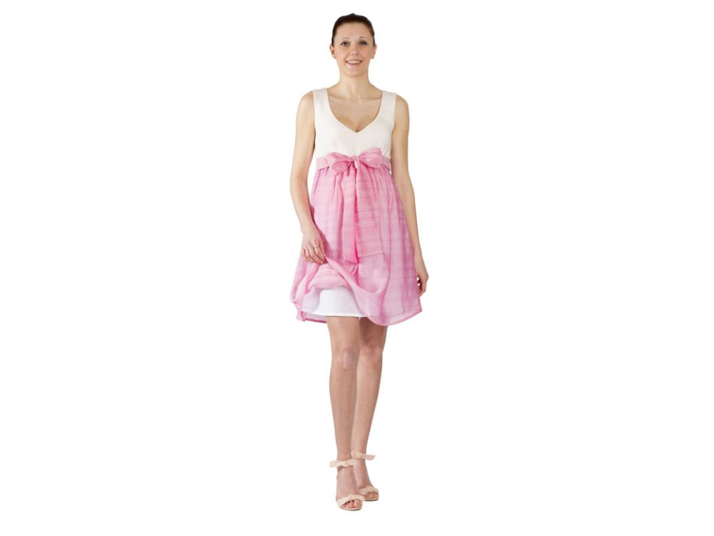 Živôtiková časť je tvarovaná tak, že cez predný diel je podstrihnutá pod prsiami a smerom do zadného dielu sa postupne znižuje k línii pásu. Sukňová časť je pod prsiami nariasená na bruško pre väčšie pohodlie. V ľavom bočnom šve je skrytý zips. Sú vyrobené z kombinácie materiálov, veľmi príjemnej chladivej viskózy a ľahkého zmesového materiálu. Sukňová časť je vypodšívkovaná jemnou bavlnou.