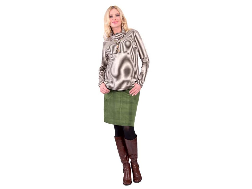 Tehotenský rolák z veľmi príjemného bavlneného materiálu. Má vysoký voľnejší rolák, ktorý je možné rôzne upravovať. Ďalšou zaujímavou časťou je opačne vsadené prúžkované bruško.