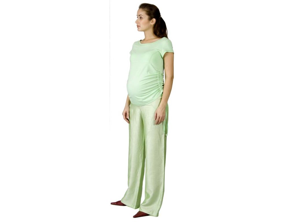 Tehotenské tričko s okrúhlym výstrihom a krátkymi rukávmi. Predný diel je prestrihnutý pod prsiami. V bočných švoch je všitá šnúrka na sťahovanie a tým aj vytváranie voľnosti pre bruško.