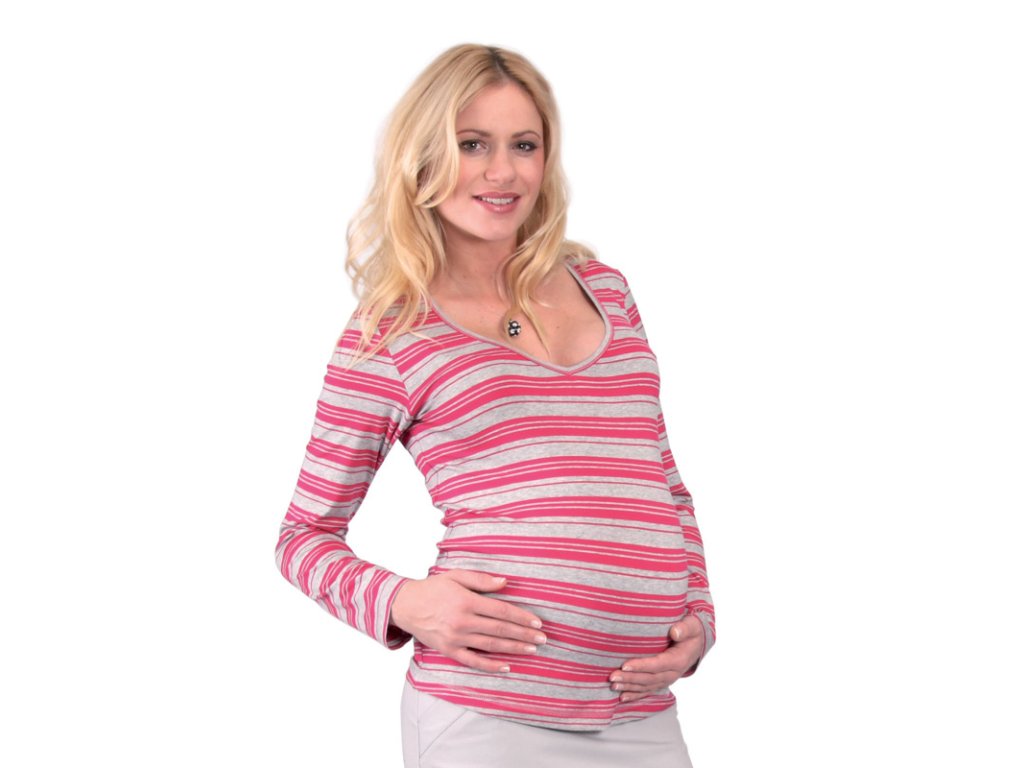 Veľmi príjemné tehotenské bavlnené tričko áčkového strihu s hlbším véčkovým výstrihom. Je priliehavé a veľmi dobre použiteľné i po pôrode.
