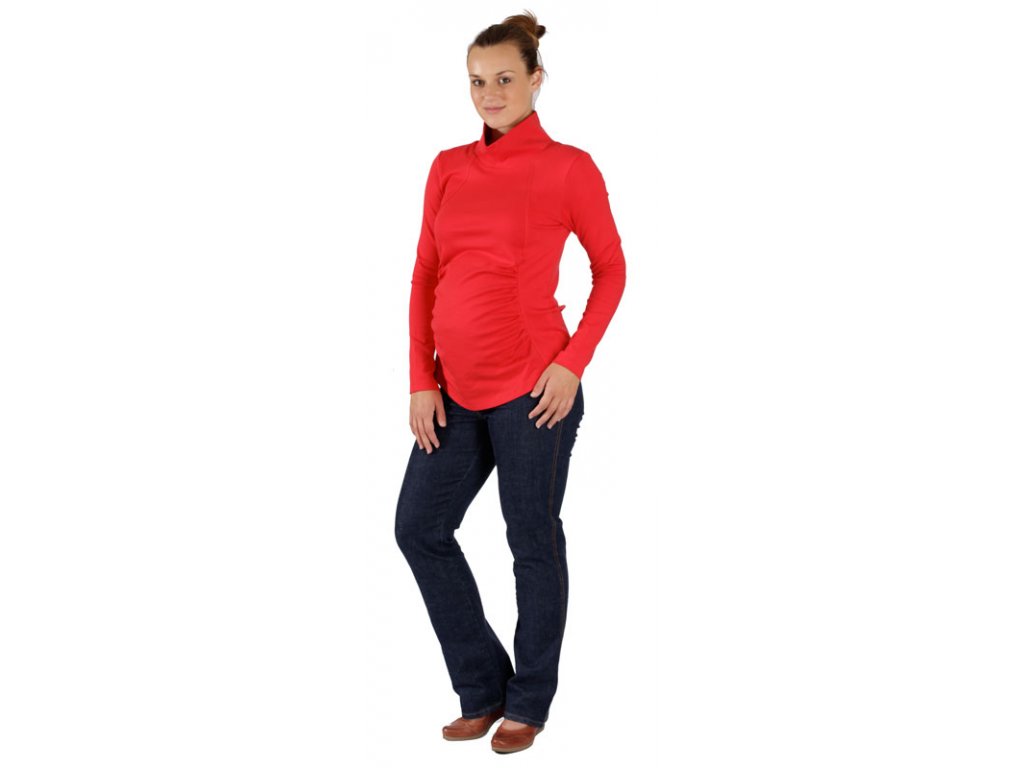 Bavlnené tehotenské tričko s dlhým rukávom a stojačikom. Predný diel je členený pozdĺžnymi švami, do ktorých je predný diel nabraný pre voľnosť na rastúce bruško. Členenie je ozdobne prešité. Tričko je teplejšie vďaka tomu, že je bavlnené.