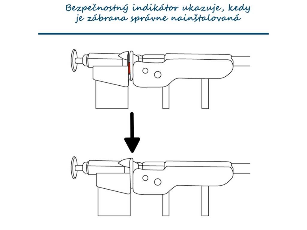 - S bezpečnostným indikátorom, ktorý ukazuje, či je zábrana správne zatvorená.