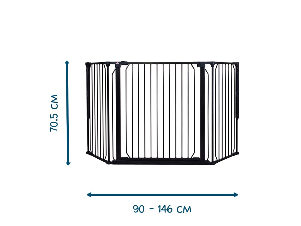 Technická špecifikácia: Výška 70,5 cm Šírka 140 cm Hĺbka 3,5 cm. Minimálna šírka otvoru 90 cm. Maximálna šírka priestoru 146 cm Materiál PE (polyetylén) a oceľ s práškovým nástrekom Farba Čierna Číslo položky: BD501509 Bezpečnostná norma EN 1930 : 2011