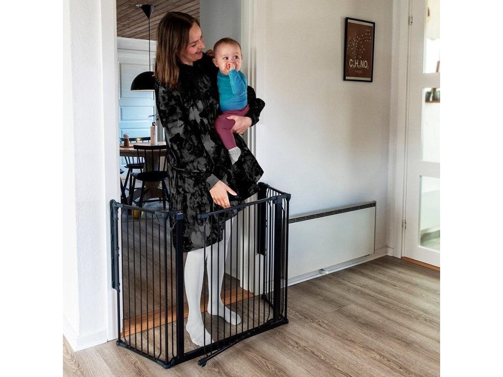 Carl Wide je navrhnutý s ohľadom na flexibilitu. Zábranu je možné nastaviť do rôznych uhlov, aby sa prispôsobila veľkosti otvoru či rozdeľovaného priestoru. Máte voľnosť v umiestnení jednotlivých dielov tak, aby čo najlepšie vyhovovali vašej potrebe. Zábranou môžete ľahko prejsť pomocou širokých dverí, ktoré je možné otvoriť z oboch strán jednou rukou – užitočná funkcia v uponáhľanom živote. Vďaka svojmu flexibilnému dizajnu a robustnej konštrukcii je BabyDan Carl Wide spoľahlivým riešením na vytvorenie bezpečného prostredia pri väčších otvoroch alebo schodiskách. A navyše, je možné neobmedzene predlžovať pomocou ľubovoľného počtu predĺžení (33 alebo 72 cm predĺženie sa predávajú zvlášť)