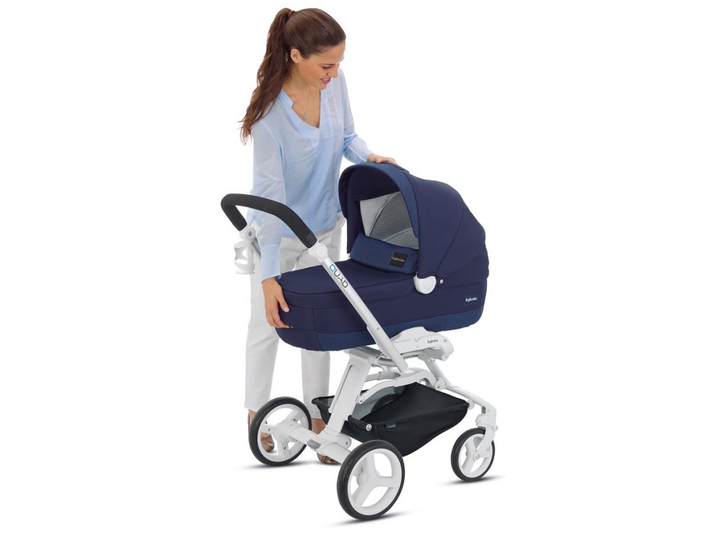 Quad je koncept kočíka kategórie SUV. Kombinuje supermoderný technický vzhľad s odolnosťou a schopnosťou pohodlne cestovať s Vaším dieťatkom v akomkoľvek teréne - to najmä vďaka možnosti výberu z rôznych typov podvozku uvedených v súvisiacom tovare. Poťahové látky najvyššej kvality a unikátny tvar prepožičiavajú tomuto kočíku mimoriadny vzhľad.